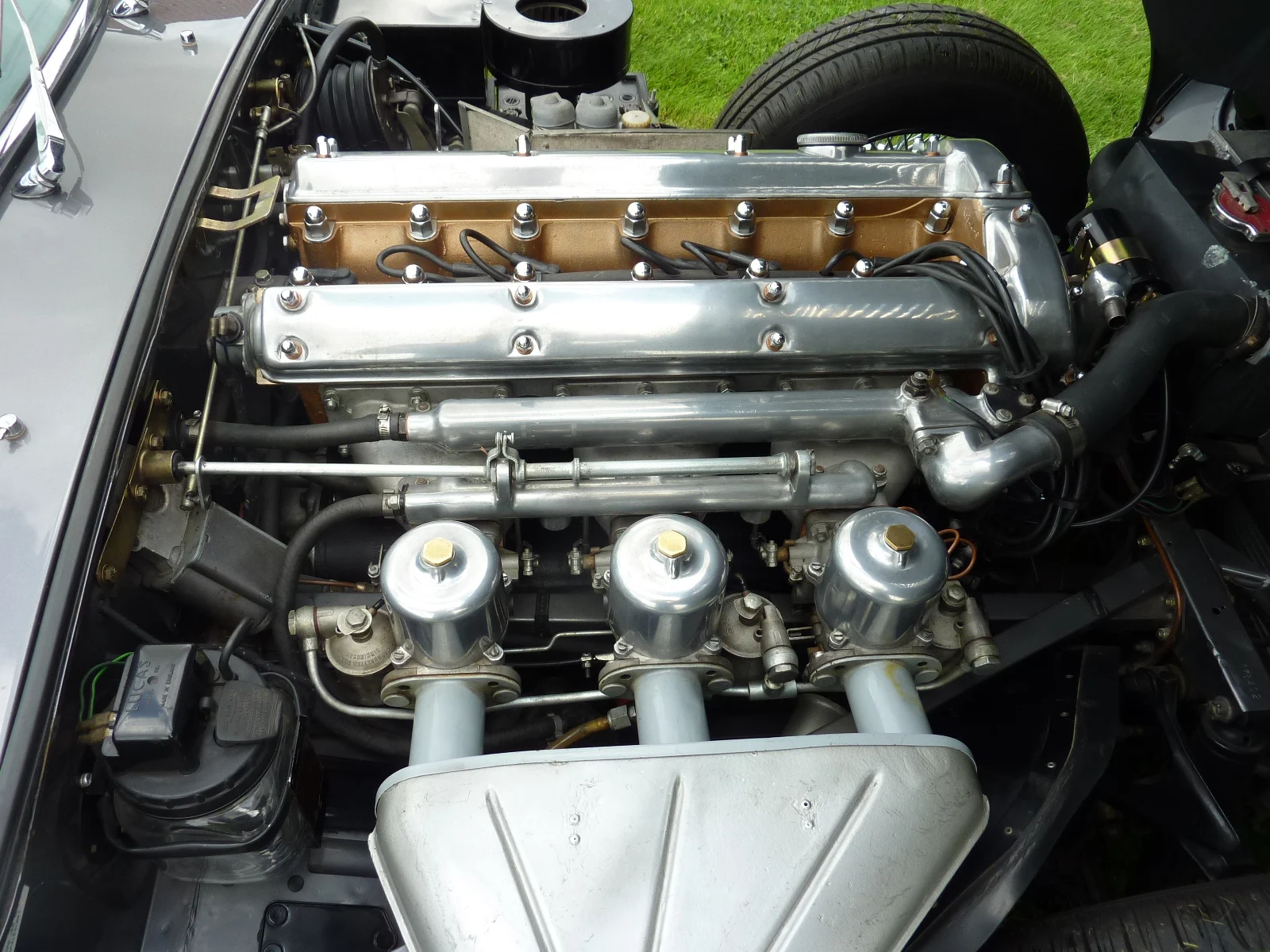 3.781 cc, 6 cyl. rækkemotor DOHC. 3 SU karburatorer, 4 trins manuel gear. 250 hk. 0-100 6,6 sek. Tophast. 250 km.